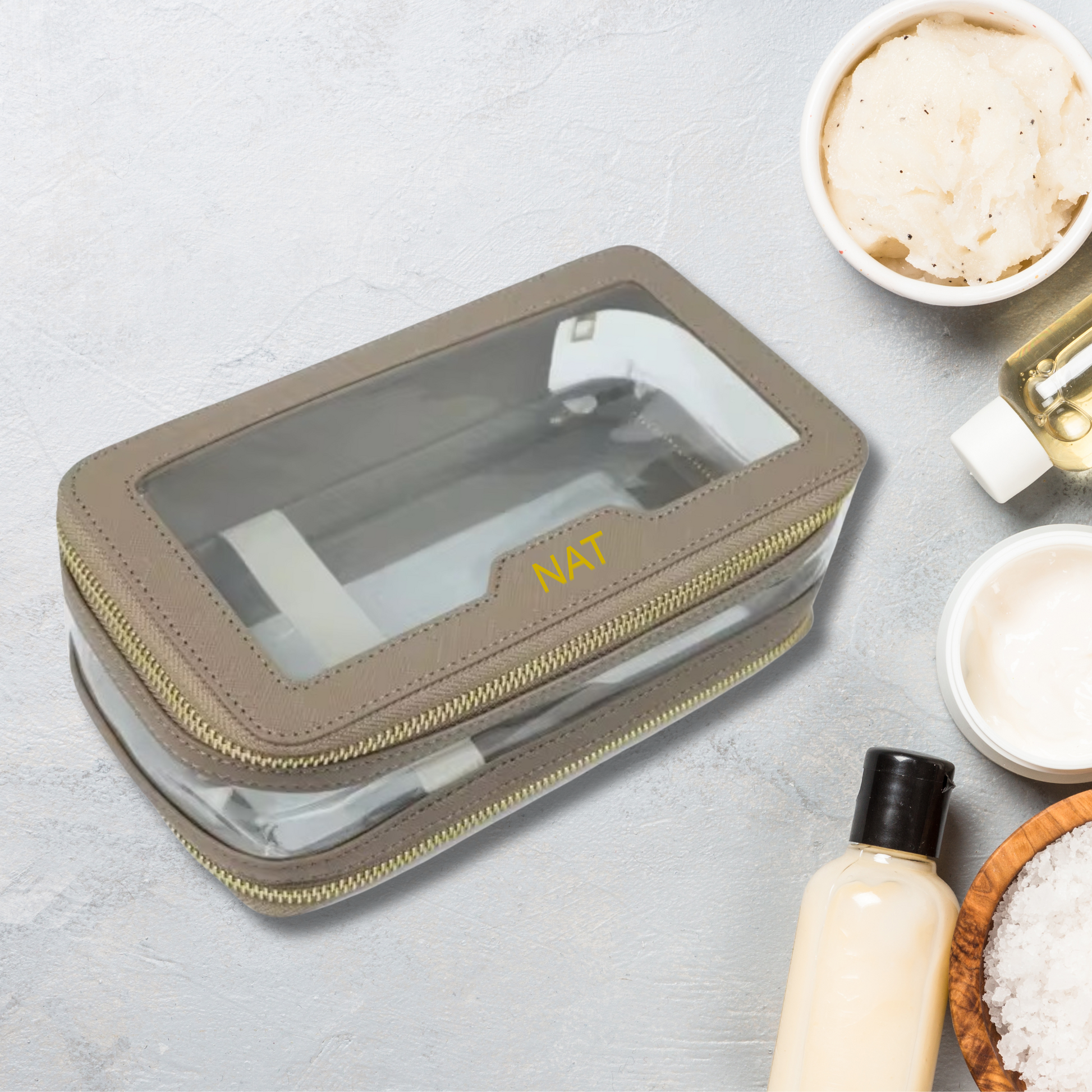 Stay effortlessly organised without compromising on style. Crafted from Premium Saffiano Leather with sleek transparent panels, this organiser is designed with two spacious layers and a dual zipper closure, making it as practical as it is beautiful.